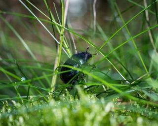 Keywords: beetle dung beetle moss grass meadow climb forest green forest floor high top upward