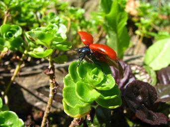 Keywords: beetle insect leaf foliage insects the red beetle wings green nature the sun summer garden stone macro fly out flying departing the beetle flying insect