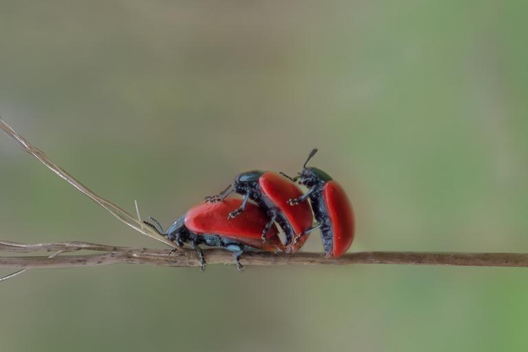 Keywords: beetle insect macro red beetle blades of grass red maikäfer threesome sex overtaking road funny