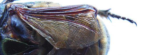 Keywords: Beetlewing folded.JPG Wing of beetle Cetonia after taking away Elytra folded Photo made by myself 2007-04-26 Siga Cetonia Coleoptera wings