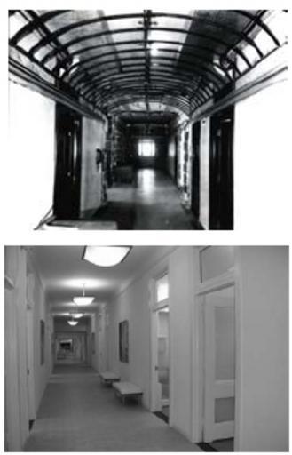 Keywords: Before&After-GSA building's ductwork.jpg en Before GSA Building corridor ductwork installation in progress 1935 After After Relocating corridor ductwork to adjoining office spaces enabled GSA to restore previously concealed cove cornices and door transoms that now flood the corridor with welcomed daylight 2012-04-17 http //www gsa gov/graphics/pbs/HVAC pdf GSA PD-USGov Uploaded with UploadWizard GSA technical preservation guidelines
