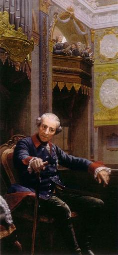 Keywords: Begas Frederick the Great (cropped).jpg Artwork Creator Oskar Begas 1868 oil canvas Institution National Museum Wrocław accession number VIII-2996 object history credit line Frederick the Great was depicted listenig to Te Deum in the Charlottenburg palace chapel after winning the battle http //www legitymizm org/multimedia-malarstwo-niemieckie www legitymizm org PD-old-100 DEFAULTSORT 1868; Frederick the Great Oskar Begas 19th-century paintings in the National Museum in Wrocław German paintings in the National Museum in Wrocław Friedrich II of Prussia in paintings Schlosskapelle Schloss Charlottenburg 1868 paintings Files uploaded by Andrew Butko from various sources |