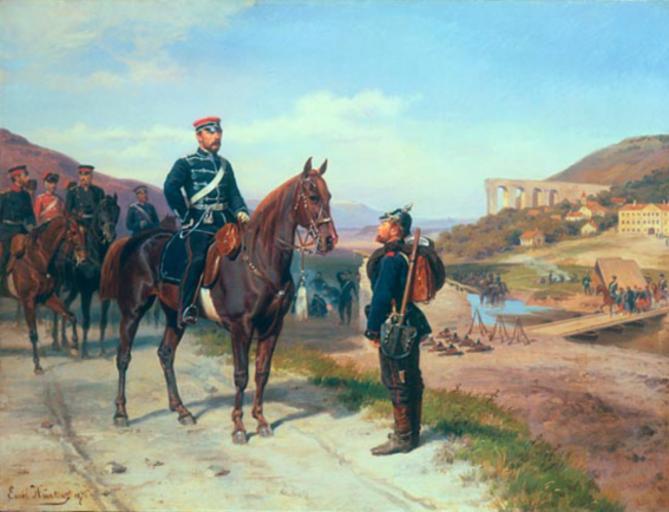 | Keywords: Begegnung-prinz Friedrich-Carl von Preussen.jpg Artwork Creator Emil Hünten 1870 Oil on canvas cm 69 52 object history credit line http //www kunstkopie de/a/huenten-johann-emil/begegnung-mit-prinz-fried html kunstkopie de PD-old-100 Uploaded with UploadWizard Paintings by Emil Hünten Frederick Charles of Prussia Images from www kunstkopie de |