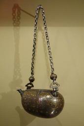 | Keywords: Begging bowl in the form of a coco-de-mer fruit, Iran, 19th century AD, steel damascened with silver and gilt - Huntington Museum of Art - DSC05069.JPG en Exhibit in the Huntington Museum of Art Huntington West Virginia USA Photography was permitted in the museum without restriction This artwork is in the public domain because the artist died more than 70 years ago 2013-05-16 14 04 07 own Daderot cc-zero Uploaded with UploadWizard Metalwork in the Huntington Museum of Art Metalwork of Iran |