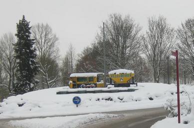 Keywords: Behren.jpg en Behren fr entrée de Behren own œuvre personnelle 2010-02-02 Behren-lès-Forbach Roundabout art in France Snow in Moselle