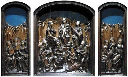 | Keywords: Beinhart Triptych of the Saint Virgins.jpg Artwork Creator Jacob Beinhart 1505 polychromy gilt wood Institution National Museum Warsaw 0 accession number Śr 115 object history credit line Retable from the Capuchin Cloister in Nysa/Neissen place of origin unknown own Cc-zero DEFAULTSORT 1505; Triptych of the Saint Virgins Triptych of the Saint Virgins NMW |