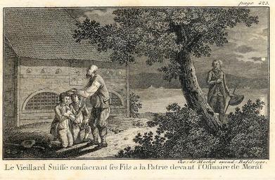 | Keywords: Beinhaus zu Murten - Mechel.jpg de Eigener Scan eines eigenen mit 1790 datierten Kupferstiches von Chritian von Mechel mit dem Titel Le Viellard Suisse consacraynt ses Fils à la Patrie devant l`Ossuaire de Morat 2012-02-17 own Docteur Ralph PD-old-100 Uploaded with UploadWizard Beinhaus zu Murten Murten Christian von Mechel Oaths in art |