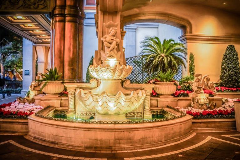 Keywords: belagio las vegas nevada fountain resort hotel city evening architecture gambling sculptures tourist attraction lighting facade casino
