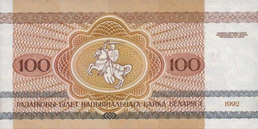 | Keywords: Belarus-1992-Bill-100-Reverse.jpg be 100 ублёў 100 roubles of Belarus 1992 es 100 rublos 100 ублей Бело уссии 1992 own scan 1992 National Bank of Republic of Belarus ациональный банк Республики Бела усь ацыянальны Банк Рэспублiкi Бела усь PD-BY-exempt banknotes Banknotes of Belarus 1992 Pahonia on banknotes Banknotes with a face value of 100 |