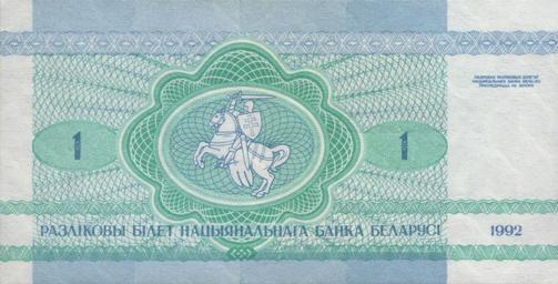 | Keywords: Belarus-1992-Bill-1-Reverse.jpg 1 убль Бело уссии 1992 1 rouble of Belarus 1992 en 1992 Belarus 1 ruble bill Reverse be Адзін убель Разьліковы білет ацыянальнага Банка Бела усі ўзо у 1992 году Адва отны бок be 1 убель es 1 rublo own scan 1992 National Bank of Republic of Belarus ациональный банк Республики Бела усь ацыянальны Банк Рэспублiкi Бела усь PD-BY-exempt banknotes Banknotes of Belarus 1992 Pahonia on banknotes Banknotes with a face value of 1 Green banknotes | ||||