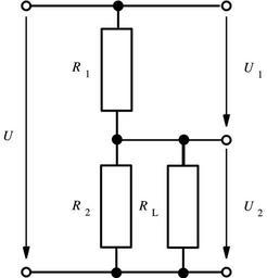 Keywords: Belasteter Spannungsteiler.svg en voltage divider with load de belasteter Spannungsteiler own Backsideficker Teaching illustrations of electronics