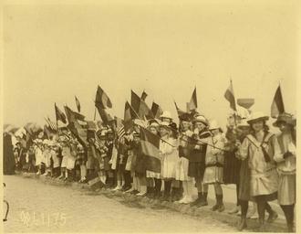 | Keywords: belgium world war one worldwarone president wilson king albert kingalbert zeebrugge monochrome Local Accession Number: 284 Description: Belgium children line the streets of Zeebrugge, Belgium and shouts of "Vive Wilson Vive L'Amerigue" went up all along the line of reception. Photographer: U.S. Signal Corps Source: Unknown Size: 7x9 Medium: Print, Sepia Date: 1919 Local Accession Number: 284 Description: Belgium children line the streets of Zeebrugge, Belgium and shouts of "Vive Wilson Vive L'Amerigue" went up all along the line of reception. Photographer: U.S. Signal Corps Source: Unknown Size: 7x9 Medium: Print, Sepia Date: 1919 |