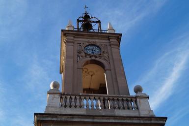 Keywords: bell tower sky blue architecture monument views perspective campaign spain facade light tower building old barcelona old building house stone brick structure construction