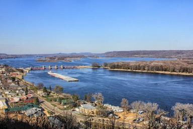 Keywords: bellevue iowa city town buildings shoreline scenic mississippi river dam architecture outside