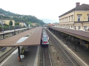 Keywords: 46 12N 9 02E Bellinzona railway station serves the city of Bellinzona, in the Canton of Ticino, Switzerland. Opened December 6, 1874. attribution: Chris j wood