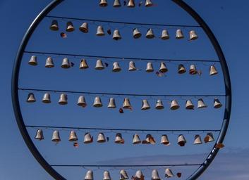 Keywords: bells circle sculpture art sound contemporary modern blue sky sunshine australia exhibition