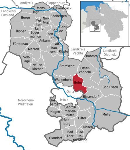 | Keywords: Belm in OS.svg DeLocMaps Belm Landkreis Osnabrück District of Osnabrück Osnabrück district L'arrondissement d'Osnabrück Arrondissement d'Osnabrück Niedersachsen Lower Saxony Basse-Saxe TUBS/Translation own Adobe Illustrator based on File Lower Saxony location map svg NordNordWest http //www landkreis-osnabrueck de/pics/medien/1_1221811658/Zwei_Wege_Strategie pdf Landkreis Osnabrück Die 2-Wege-Strategie im Landkreis Osnabrück File Locator map OS in Lower Saxony svg TUBS 2009-06-21 Hagar66 based on work of TUBS TUBS GFDL cc-by-3 0 2 5 2 0 1 0 cc-by-sa-3 0 2 5 2 0 1 0 TUBS/Credits Locator maps of municipalities in Landkreis Osnabrück Belm |