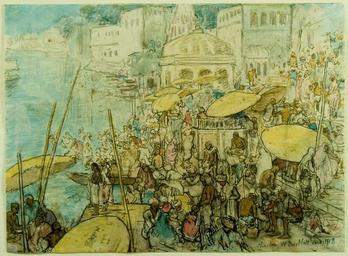 | View Original: | 'Benares_No._1'_by_Charles_W._Bartlett,_1918,_pencil,_pen_and_watercolor.JPG (882x650) | |||