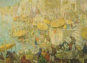 | Keywords: 'Benares' (No. 1), oil on canvas painting by Charles W. Bartlett.jpg Artwork creator Charles W Bartlett 1927 Oil canvas cm Institution Honolulu Museum of Art accession number object history credit line Miles Richard and Jennifer Saville A Printmaker in Paradise The Art and Life of Charles W Bartlett with a catalogue raisonné of etchings and color woodblock prints Honolulu Hawaii Honolulu Academy of Arts 2001 DEFAULTSORT Bartlett Charles PD-old-auto 1940 Oil paintings by Charles W Bartlett 1927 Charles W Bartlett in the Honolulu Museum of Art Ghats in Varanasi in art 1920s paintings from India Impressionist and postimpressionist art in the Honolulu Museum of Art Landscape paintings of India Landscape paintings in the Honolulu Museum of Art Genre paintings in the Honolulu Museum of Art 20th-century paintings in the Honolulu Museum of Art Bartlett Ganges River in art Ganges River in Varanasi British paintings in the Honolulu Museum of Art |