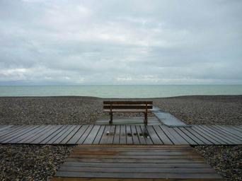 Keywords: bench beach sea
