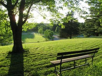 Keywords: bench green tree grass summer meadow countryside park sunlight