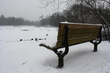 Keywords: bench lake landscape duck sitting nature winter snow cold lonely outdoor