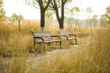 Keywords: bench park autumn