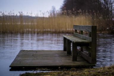 Keywords: bench river nature outside straw grass water seat moody lonely landscape outdoor