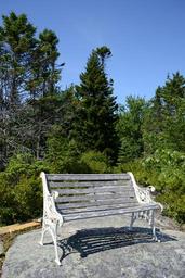 Keywords: bench rocks forest sky blue summer wooden outdoor day