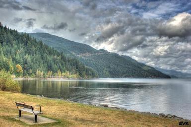 Keywords: bench scenic landscape peaceful relaxing nature water lake