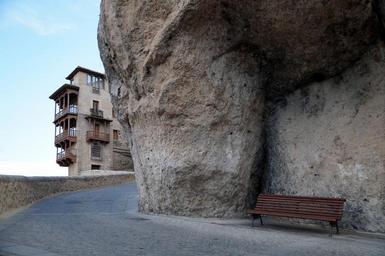 Keywords: bench void at home hanging houses paving stone stone cuenca road spain