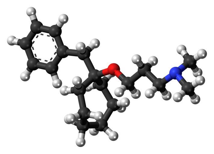 | Keywords: Bencyclane 3D ball.png Ball-and-stick model of the bencyclane molecule a calcium channel blocker Color code 505050 Carbon C black<br> F0F0F0 Hydrogen H white<br> F51E1E Oxygen O red<br> 3C50FA Nitrogen N blue<br> 2011-07-30 own DS Visualizer Jynto talk Space-filling version cc-zero Bencyclane Images by Jynto Ball-and-stick models |