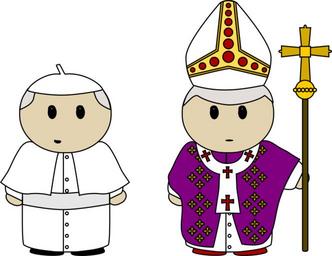 Keywords: benedict cartoon catholic church clothes cross francis hat pope priest staff