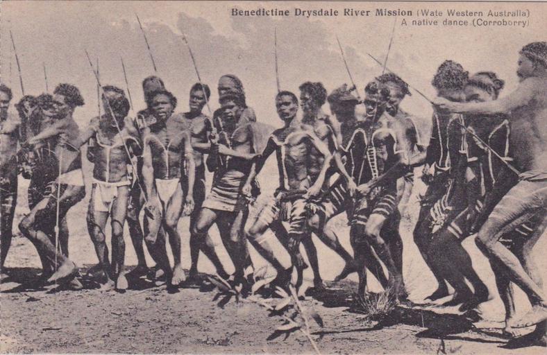Keywords: western australia westernaustralia aborigine native indigenous drysdale river mission drysdalerivermission benedictine vintage corroboree outdoor A corroboree is an event where Australian Aborigines interact with the Dreamtime through dance, music and costume. "Their bodies painted in different ways, and they wore various adornments, which were not used every day." The word corroboree was coined by the European settlers of Australia in imitation of an east coast local Aboriginal Australian word caribberie. (wikipedia) A corroboree is an event where Australian Aborigines interact with the Dreamtime through dance, music and costume. "Their bodies painted in different ways, and they wore various adornments, which were not used every day." The word corroboree was coined by the European settlers of Australia in imitation of an east coast local Aboriginal Australian word caribberie. (wikipedia) |