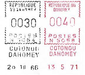 Keywords: Benin A1.jpg en Meter stamp catalog image Benin type A1 Richard Stambaugh Richard Stambaugh 2009-09-17 Meter stamps of Benin