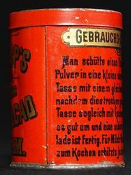 | Keywords: Bensdorps leight loslicher Reiner Cacao Amsterdam, oranje rond blikje, foto5.JPG Very old product that is not produced and not sold any more Note that some tins may look the same but when looked for carefully there are some slight differences Photographed at a collector of Droste memorabilia and old tin cans For more info see http //www tincollectors nl/ tincollectors nl or email info tincollectors nl own 2014-02-08 13 03 43 Alf van Beem CC-Zero Trademarked Bensdorp cocoa tins Bensdorp cacao |