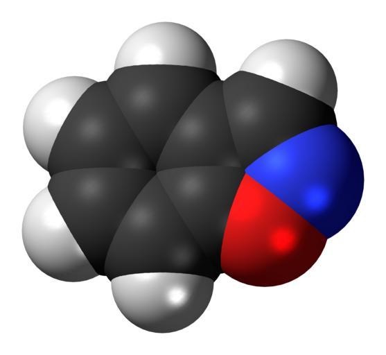 Keywords: Benzisoxazole-3D-spacefill.png Space-filling model of the benzisoxazole molecule a nitrogen-oxygen heterocycle and a simple aromatic ring Colour code 505050 Carbon C black<br> F0F0F0 Hydrogen H white<br> F51E1E Oxygen O red<br> 3C50FA Nitrogen N blue<br> 2011-02-10 own DS Visualizer Jynto talk Ball-and-stick version cc-zero Benzisoxazole Images by Jynto Space-filling models |