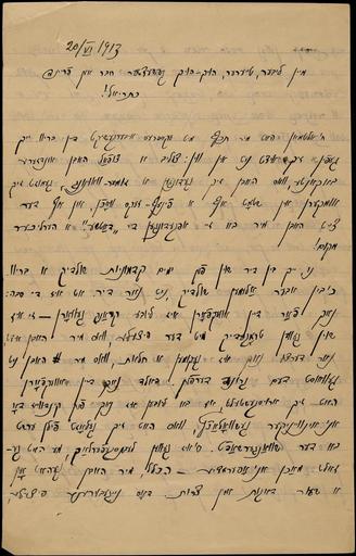 | Keywords: Ber Borochov Letter to Kasriel 1913 p1.png dacha near Vienna to Kasriel who was Leon Khazanovich see http //www jewishgen org/yizkor/wyszkow/wys033 html L Khazanovich The Jewish pogroms in November and December 1918 Acts and Documents Stockholm 1918 in Berlin 1913 about the birth of Borochov's daughter Shoshana and the illness of his wife Lyuba during the pregnancy and afterward; about Borochov ™s philological bibliographic scholarship; about Yiddish research that appeared in the anthology Pinkes; and about his own ill health He suggested that Kasriel would try to obtain the vacant post of Berlin correspondent for the New York Yiddish newspaper Di Varhayt and attempted to answer Kasriel's questions about the state of Socialism and Industrialisation in South America He confessed his ignorance on the subject but suggested how Kasriel might research the matter Yiddish; Four page fragment RG 107 Letters Collection YIVO 1913-06-20 http //www yivoencyclopedia org/article aspx/Borokhov_Ber www yivoencyclopedia org Ber Borochov Ber Borochov Ber Borochov Dov Ber Borojov Dov-Ber Borochov דב בר בורוכוב Ber Borochov Ber Borochov Dow Ber Borochow Ð‘Ð¾Ñ Ð¾Ñ…Ð¾Ð² Ð‘ÐµÑ Ð‘Ð¾Ñ Ð¾Ñ…Ð¾Ð² Ð‘ÐµÑ Ber Borochov 1881-1917 YIVO is located at The Center for Jewish History at 15 West 16th Street in New York City Information number 212 246-6080 PD-old-auto-1923 1917 Ber Borochov Hebrew handwritten |