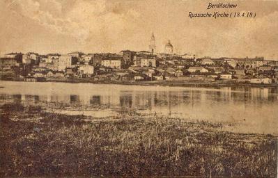 Keywords: Berdychiv,view-1918.jpg ru Бе дичев в 1918 году во в емя немецкой оккупации в цент е чуть левее - видна Заг ебельная синагога 1918 http //berdicheva net/plugins/p17_image_gallery/popup php categoryid 3 p17_sectionid 2 p17_imageid 567 author other versions PD-Art Berdychiv Synagogues in Zhytomyr Oblast Cultural heritage monuments in Berdychiv |
