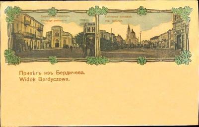Keywords: Berdychiv,views, Choral Synagogue.jpg ru Бе дичев в начале XX в Хо альная синагога слева 1908 private collection author other versions PD-100 Synagogue in Berdychiv