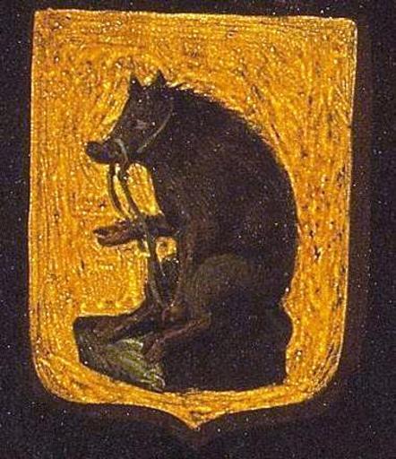 Keywords: Beresteyn wapen.jpg Heraldic shield detail showing the Beresteyn heraldic shield of the Beer or male swine in upper left corner of one of many known Mierevelt portraits of Paulus Cornelisz van Beresteyn 1548-1625 merchant of rose madder Dutch meekrap and wine later magistrate and mayor of Delft portrayed in old age oil on oak panel 63 5x51 1 cm Inv no MMB1599 125695 http //www collectieantwerpen be collectieantwerpen be Museum Mayer van den Bergh search term Beresteyn 1550-1649 ca 1620 workshop Michiel Jansz van Mierevelt <gallery>File Mierevelt- Paulus van Beresteyn 1548-1628 jpg</gallery> PD-Art-100 Paulus van Beresteyn Beresteyn bear Hofje Codde en van Beresteyn Studio of Michiel Jansz van Mierevelt