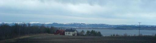 Keywords: Bergan panorama.jpg Panoramautsikt over deler av Trondheimsfjorden Frosta og Fosen med den gamle husmannsplassen Bergan på Skatval i forgrunnen Own 2009-04-11 Erik Fløan Røkke