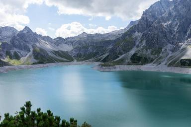 Keywords: bergsee reservoir mountains alpine lake water austria rock vorarlberg landscape