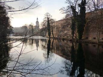 Keywords: berlin castle moat lake dusia view water reflection reflex tourism the stones tour walls stone wall fortification architecture building courtyard tower monument