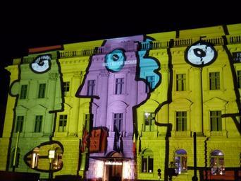 Keywords: berlin facade tungsten building modern big city capital festival of light evening night darkness lighting