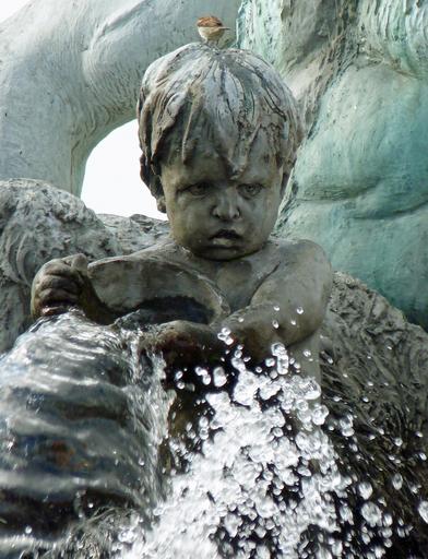 Keywords: berlin fountain child bird water