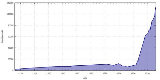 | Keywords: Berlin population4.svg en Berlin's population 1250-1750 de Einwohnerentwicklung von Berlin seit 1250 bis 1750 ValidSVG Berlin_population svg 50 2013-01-27 19 06 UTC Berlin_population svg Gorgo derivative work Bernard Ladenthin thumb left thumb left thumb left thumb left Gnuplot script to generate this plot gnuplot <source lang gnuplot > /usr/bin/gnuplot gnuplot 4 2 / Ubuntu 8 10 input set timefmt d m Y set datafile separator ; output unset key set style data lines set style fill transparent solid 0 4 set grid set xdata time set xlabel 'Jahr' set xrange '01 01 1250' '30 06 1750' set xtics 1576800000 set mxtics 5 set format x ' Y' set ylabel 'Einwohnerzahl' set ytics 20000 set format y ' 0f' set term svg size 800 400 font Arial 10 set output 'berlin_population4 svg' plot '-' using 1 2 with filledcurves below x1 lt rgb 'dark-blue' lw 2 30 06 1220;2400 30 06 1250;2000 30 06 1300;4000 30 06 1400;7000 30 06 1450;7000 30 06 1450;8000 30 06 1576;11000 30 06 1600;9000 30 06 1618;12000 30 06 1631;8100 30 06 1642;7500 30 06 1648;6000 30 06 1680;10000 30 06 1685;17000 30 06 1688;18000 30 06 1688;20000 30 06 1709;55196 30 06 1712;61000 30 06 1721;65300 30 06 1726;72000 30 06 1730;72387 30 06 1732;77993 30 06 1733;79017 30 06 1735;86000 30 06 1740;90000 30 06 1746;97000 30 06 1747;107224 30 06 1748;107635 30 06 1749;110933 30 06 1750;113289 30 06 1751;116483 30 06 1752;119224 30 06 1753;122897 30 06 1754;125385 30 06 1755;126661 30 06 1756;99177 30 06 1757;94219 30 06 1758;92356 30 06 1759;94433 30 06 1760;95245 30 06 1761;98238 30 06 1762;98090 30 06 1763;119219 30 06 1764;122667 30 06 1765;125139 30 06 1766;125878 30 06 1767;127140 30 06 1768;130359 30 06 1769;132365 30 06 1770;133520 30 06 1771;133639 30 06 1772;131126 30 06 1773;132204 30 06 1774;134414 30 06 1775;136137 30 06 1776;137468 30 06 1777;140719 30 06 1778;124963 30 06 1779;138225 30 06 1780;140625 30 06 1781;142375 30 06 1782;143098 30 06 1783;144224 30 06 1784;145021 30 06 1785;146647 30 06 1786;147338 30 06 1787;146167 30 06 1788;149274 30 06 1789;149875 30 06 1790;150803 30 06 1791;155211 30 06 1792;157534 30 06 1793;157121 30 06 1794;157603 30 06 1795;156218 30 06 1796;160733 30 06 1797;164978 30 06 1798;169019 30 06 1799;169510 30 06 1800;172132 30 06 1801;176709 30 06 1802;177029 30 06 1803;178309 30 06 1804;182157 30 06 1805;155706 30 06 1806;155000 30 06 1807;150489 30 06 1808;145941 30 06 1809;151119 30 06 1810;162971 30 06 1811;169763 30 06 1812;171000 30 06 1813;178641 30 06 1814;185659 30 06 1815;197717 30 06 1816;197817 30 06 1817;195689 30 06 1818;198125 30 06 1819;201138 30 06 1820;201900 30 06 1821;205965 30 06 1822;209146 01 12 1825;220277 01 12 1828;236830 01 12 1831;248682 03 12 1834;265122 03 12 1837;283722 03 12 1840;330230 03 12 1843;353149 03 12 1846;408502 03 12 1849;423902 03 12 1852;438958 03 12 1855;447483 03 12 1858;458637 03 12 1861;547571 03 12 1864;632749 03 12 1867;702437 01 12 1871;826341 01 12 1875;966858 31 12 1876;980194 31 12 1877;1008566 01 12 1880;1122330 01 12 1885;1315287 01 12 1890;1578794 02 12 1895;1677304 01 12 1900;1888848 31 12 1901;1893941 31 12 1902;1911628 31 12 1903;1946076 31 12 1904;1988742 01 12 1905;2040148 31 12 1906;2073521 31 12 1907;2076437 31 12 1908;2057274 31 12 1909;2057610 01 12 1910;2071257 31 12 1911;2084045 31 12 1912;2095030 31 12 1913;2079156 31 12 1914;1945684 31 12 1915;1835094 01 12 1916;1771491 05 12 1917;1744085 31 12 1918;1748000 08 10 1919;1902508 31 12 1919;1928432 31 12 1920;3879409 31 12 1921;3914151 31 12 1922;3953920 31 12 1923;3918985 31 12 1924;3986458 16 06 1925;4024286 31 12 1925;4082778 31 12 1926;4125824 31 12 1927;4195725 31 12 1928;4272375 31 12 1929;4328760 31 12 1930;4332834 31 12 1931;4314466 31 12 1932;4273701 16 06 1933;4242501 31 12 1933;4221024 31 12 1934;4218332 31 12 1935;4226584 31 12 1936;4267560 31 12 1937;4314432 31 12 1938;4347875 17 05 1939;4338756 31 12 1939;4330640 31 12 1940;4330810 31 12 1941;4383882 31 12 1942;4478102 31 12 1943;4430204 31 12 1944;4361398 12 08 1945;2807405 31 12 1945;3064629 29 10 1946;3170832 31 12 1946;3213966 31 12 1947;3271179 31 12 1948;3312307 31 12 1949;3328193 31 12 1950;3336026 31 12 1951;3351865 31 12 1952;3374178 31 12 1953;3367406 31 12 1954;3350957 31 12 1955;3343182 31 12 1956;3345650 31 12 1957;3338561 31 12 1958;3316353 31 12 1959;3290333 31 12 1960;3274016 31 12 1961;3252691 31 12 1962;3235231 31 12 1963;3251489 31 12 1964;3270959 31 12 1965;3274500 31 12 1966;3265398 31 12 1967;3245325 31 12 1968;3225354 31 12 1969;3218112 31 12 1970;3208719 31 12 1971;3172902 31 12 1972;3152489 31 12 1973;3136776 31 12 1974;3118134 31 12 1975;3083011 31 12 1976;3056973 31 12 1977;3044968 31 12 1978;3038689 31 12 1979;3042504 31 12 1980;3048759 31 12 1981;3050974 31 12 1982;3042612 31 12 1983;3040035 31 12 1984;3045456 31 12 1985;3075670 31 12 1986;3115473 31 12 1987;3273630 31 12 1988;3352848 31 12 1989;3409737 31 12 1990;3433695 31 12 1991;3446031 31 12 1992;3465748 31 12 1993;3475392 31 12 1994;3472009 31 12 1995;3471418 31 12 1996;3458763 31 12 1997;3425759 31 12 1998;3398822 31 12 1999;3386667 31 12 2000;3382169 31 12 2001;3388434 31 12 2002;3392425 31 12 2003;3388477 31 12 2004;3387828 31 12 2005;3395189 31 12 2006;3404037 31 12 2007;3416255 31 12 2008;3431675 31 12 2009;3442675 31 12 2010;3460725 31 12 2011;3501872 31 12 2012;3375222 31 12 2013;3517424 31 12 2014;3562166 31 12 2015;3610156 </source> Cc-zero Temporal population graphs of Berlin Images with Gnuplot source code |