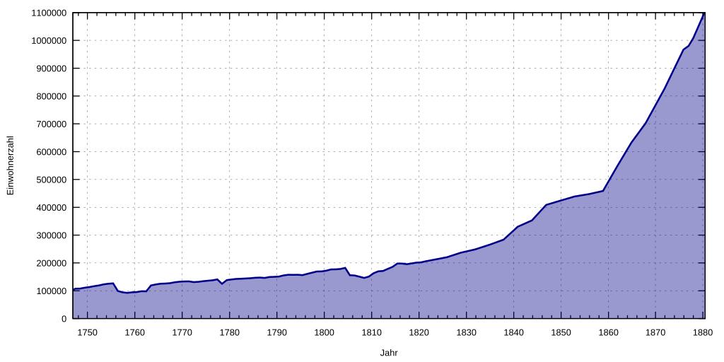 | Keywords: Berlin population5.svg en Berlin's population 1747-1880 de Einwohnerentwicklung von Berlin seit 1747 to 1880 ValidSVG Berlin_population svg 50 2013-01-27 19 06 UTC Berlin_population svg Gorgo derivative work Bernard Ladenthin thumb left thumb left thumb left thumb left Gnuplot script to generate this plot gnuplot <source lang gnuplot > /usr/bin/gnuplot gnuplot 4 2 / Ubuntu 8 10 input set timefmt d m Y set datafile separator ; output unset key set style data lines set style fill transparent solid 0 4 set grid set xdata time set xlabel 'Jahr' set xrange '01 01 1747' '30 06 1880' set xtics 315360000 set mxtics 5 set format x ' Y' set ylabel 'Einwohnerzahl' set ytics 100000 set format y ' 0f' set term svg size 800 400 font Arial 10 set output 'berlin_population5 svg' plot '-' using 1 2 with filledcurves below x1 lt rgb 'dark-blue' lw 2 30 06 1220;2400 30 06 1250;2000 30 06 1300;4000 30 06 1400;7000 30 06 1450;7000 30 06 1450;8000 30 06 1576;11000 30 06 1600;9000 30 06 1618;12000 30 06 1631;8100 30 06 1642;7500 30 06 1648;6000 30 06 1680;10000 30 06 1685;17000 30 06 1688;18000 30 06 1688;20000 30 06 1709;55196 30 06 1712;61000 30 06 1721;65300 30 06 1726;72000 30 06 1730;72387 30 06 1732;77993 30 06 1733;79017 30 06 1735;86000 30 06 1740;90000 30 06 1746;97000 30 06 1747;107224 30 06 1748;107635 30 06 1749;110933 30 06 1750;113289 30 06 1751;116483 30 06 1752;119224 30 06 1753;122897 30 06 1754;125385 30 06 1755;126661 30 06 1756;99177 30 06 1757;94219 30 06 1758;92356 30 06 1759;94433 30 06 1760;95245 30 06 1761;98238 30 06 1762;98090 30 06 1763;119219 30 06 1764;122667 30 06 1765;125139 30 06 1766;125878 30 06 1767;127140 30 06 1768;130359 30 06 1769;132365 30 06 1770;133520 30 06 1771;133639 30 06 1772;131126 30 06 1773;132204 30 06 1774;134414 30 06 1775;136137 30 06 1776;137468 30 06 1777;140719 30 06 1778;124963 30 06 1779;138225 30 06 1780;140625 30 06 1781;142375 30 06 1782;143098 30 06 1783;144224 30 06 1784;145021 30 06 1785;146647 30 06 1786;147338 30 06 1787;146167 30 06 1788;149274 30 06 1789;149875 30 06 1790;150803 30 06 1791;155211 30 06 1792;157534 30 06 1793;157121 30 06 1794;157603 30 06 1795;156218 30 06 1796;160733 30 06 1797;164978 30 06 1798;169019 30 06 1799;169510 30 06 1800;172132 30 06 1801;176709 30 06 1802;177029 30 06 1803;178309 30 06 1804;182157 30 06 1805;155706 30 06 1806;155000 30 06 1807;150489 30 06 1808;145941 30 06 1809;151119 30 06 1810;162971 30 06 1811;169763 30 06 1812;171000 30 06 1813;178641 30 06 1814;185659 30 06 1815;197717 30 06 1816;197817 30 06 1817;195689 30 06 1818;198125 30 06 1819;201138 30 06 1820;201900 30 06 1821;205965 30 06 1822;209146 01 12 1825;220277 01 12 1828;236830 01 12 1831;248682 03 12 1834;265122 03 12 1837;283722 03 12 1840;330230 03 12 1843;353149 03 12 1846;408502 03 12 1849;423902 03 12 1852;438958 03 12 1855;447483 03 12 1858;458637 03 12 1861;547571 03 12 1864;632749 03 12 1867;702437 01 12 1871;826341 01 12 1875;966858 31 12 1876;980194 31 12 1877;1008566 01 12 1880;1122330 01 12 1885;1315287 01 12 1890;1578794 02 12 1895;1677304 01 12 1900;1888848 31 12 1901;1893941 31 12 1902;1911628 31 12 1903;1946076 31 12 1904;1988742 01 12 1905;2040148 31 12 1906;2073521 31 12 1907;2076437 31 12 1908;2057274 31 12 1909;2057610 01 12 1910;2071257 31 12 1911;2084045 31 12 1912;2095030 31 12 1913;2079156 31 12 1914;1945684 31 12 1915;1835094 01 12 1916;1771491 05 12 1917;1744085 31 12 1918;1748000 08 10 1919;1902508 31 12 1919;1928432 31 12 1920;3879409 31 12 1921;3914151 31 12 1922;3953920 31 12 1923;3918985 31 12 1924;3986458 16 06 1925;4024286 31 12 1925;4082778 31 12 1926;4125824 31 12 1927;4195725 31 12 1928;4272375 31 12 1929;4328760 31 12 1930;4332834 31 12 1931;4314466 31 12 1932;4273701 16 06 1933;4242501 31 12 1933;4221024 31 12 1934;4218332 31 12 1935;4226584 31 12 1936;4267560 31 12 1937;4314432 31 12 1938;4347875 17 05 1939;4338756 31 12 1939;4330640 31 12 1940;4330810 31 12 1941;4383882 31 12 1942;4478102 31 12 1943;4430204 31 12 1944;4361398 12 08 1945;2807405 31 12 1945;3064629 29 10 1946;3170832 31 12 1946;3213966 31 12 1947;3271179 31 12 1948;3312307 31 12 1949;3328193 31 12 1950;3336026 31 12 1951;3351865 31 12 1952;3374178 31 12 1953;3367406 31 12 1954;3350957 31 12 1955;3343182 31 12 1956;3345650 31 12 1957;3338561 31 12 1958;3316353 31 12 1959;3290333 31 12 1960;3274016 31 12 1961;3252691 31 12 1962;3235231 31 12 1963;3251489 31 12 1964;3270959 31 12 1965;3274500 31 12 1966;3265398 31 12 1967;3245325 31 12 1968;3225354 31 12 1969;3218112 31 12 1970;3208719 31 12 1971;3172902 31 12 1972;3152489 31 12 1973;3136776 31 12 1974;3118134 31 12 1975;3083011 31 12 1976;3056973 31 12 1977;3044968 31 12 1978;3038689 31 12 1979;3042504 31 12 1980;3048759 31 12 1981;3050974 31 12 1982;3042612 31 12 1983;3040035 31 12 1984;3045456 31 12 1985;3075670 31 12 1986;3115473 31 12 1987;3273630 31 12 1988;3352848 31 12 1989;3409737 31 12 1990;3433695 31 12 1991;3446031 31 12 1992;3465748 31 12 1993;3475392 31 12 1994;3472009 31 12 1995;3471418 31 12 1996;3458763 31 12 1997;3425759 31 12 1998;3398822 31 12 1999;3386667 31 12 2000;3382169 31 12 2001;3388434 31 12 2002;3392425 31 12 2003;3388477 31 12 2004;3387828 31 12 2005;3395189 31 12 2006;3404037 31 12 2007;3416255 31 12 2008;3431675 31 12 2009;3442675 31 12 2010;3460725 31 12 2011;3501872 31 12 2012;3375222 31 12 2013;3517424 31 12 2014;3562166 31 12 2015;3610156 </source> Cc-zero Temporal population graphs of Berlin Images with Gnuplot source code |