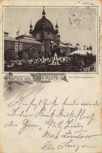 | Keywords: Berlin, Treptow, Gewerbeausstellung 1896, Ausstellungspalast.jpg old picture postcard of Berlin industrial exhibition 1896 in Treptower Park - view of the exhibition palace alte Ansichtskarte zur Berliner Gewerbeausstellung 1896 im Treptower Park - Ansicht des Ausstellungspalastes http //www digitale-bibliothek de/scripts/ts dll s 6 id 1EBE9D6B mp /art/1722/ sc Deutschland htm Deutschland in alten Ansichten DVD-ROM 1896 publishing company H Noback Hamburg Eisenach ges gesch PD because of age PD-old Ausstellungspalast Berlin-Moabit Berliner Gewerbeausstellung 1896 Postcards of Berlin-Alt-Treptow 1896 postcards of Germany Exhibition postcards 1896 in Berlin Grosse Berliner Kunstausstellung |