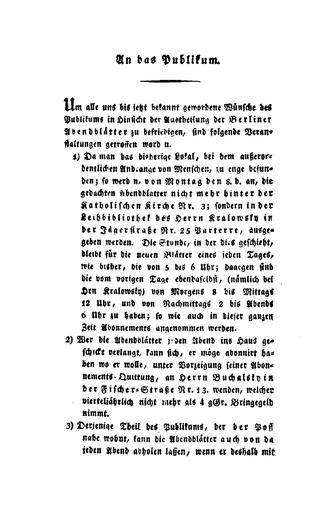 | Keywords: Berliner Abendblätter 1810 A21.jpg Berliner Abendblätter Berlin Julius Eduard Hitzig Berliner_Abendblätter_1810_ jpg 021 A22 http //www presse uni-wuerzburg de/einblick/abendblaetter/ 1810-1811 Heinrich von Kleist Author died more than 70 years ago - public domain PD-old-100 Berliner Abendblätter |